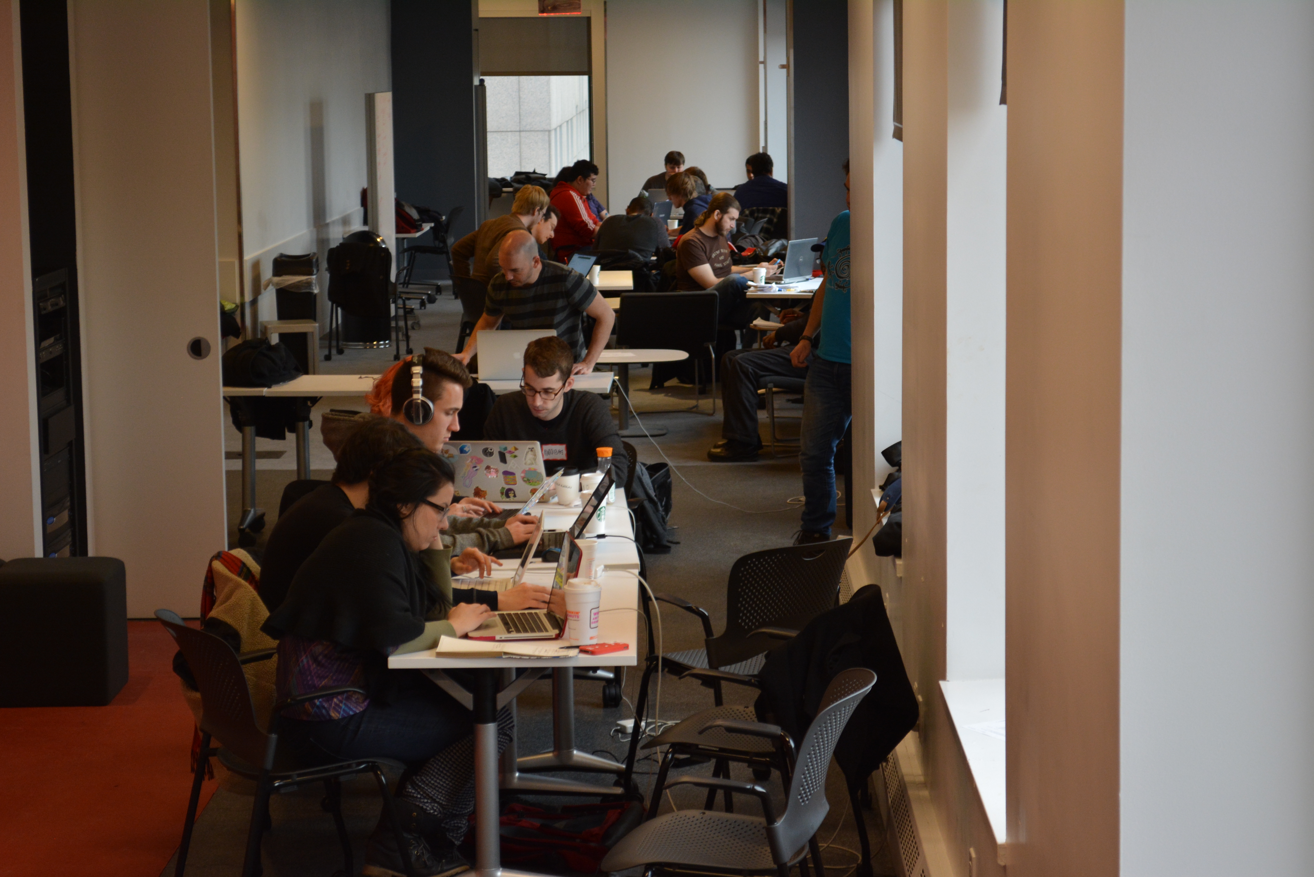 Most of our classes and events take place at the brand new 370 Jay Street building, which is located on the NYU Brooklyn campus. A large section of our building is flexible workspace, and you can typically find Game Center students making and playing games out in the open – especially during our weekly playtest event. We are also home to the Game Center Open Library, the largest collection of games held by any university in the world.
