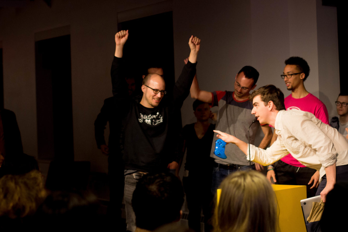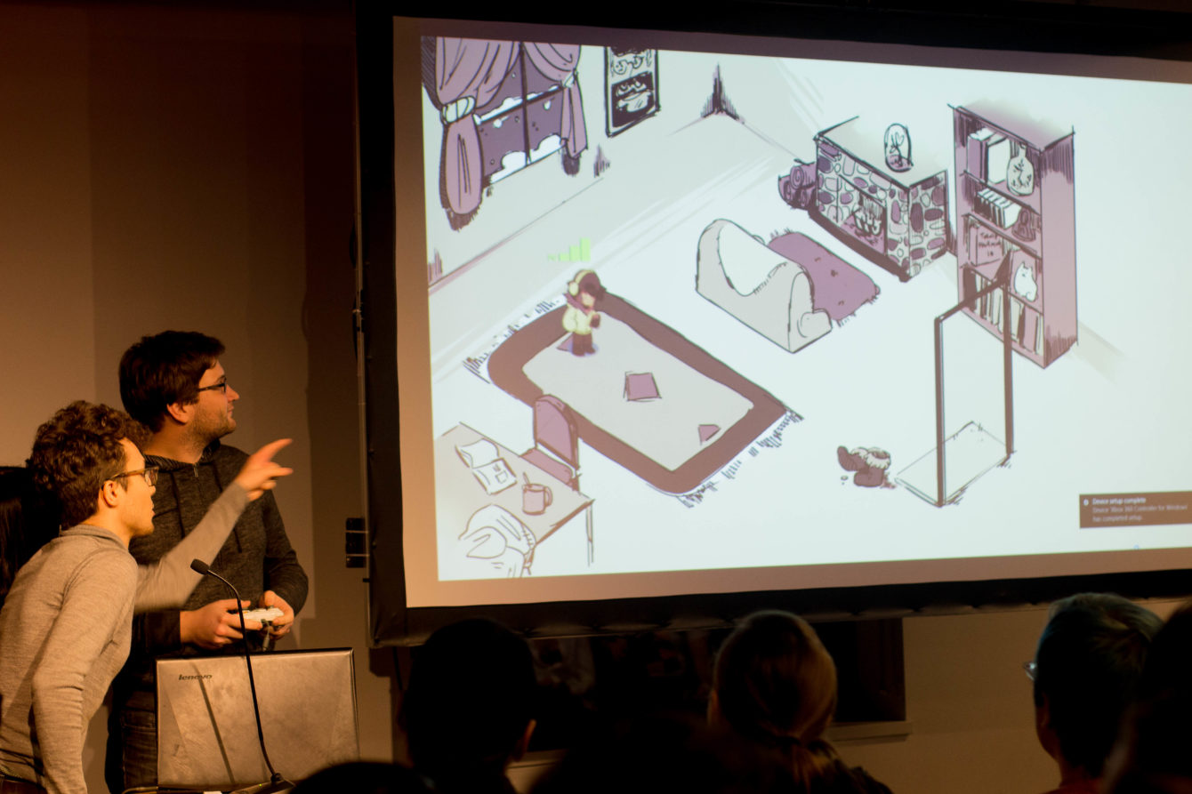 On Sunday at 5PM, everyone exhibits their game for all attendees to play. A team of judges (comprised of NYU Game Center faculty and local indie developers) give out a few fun awards.