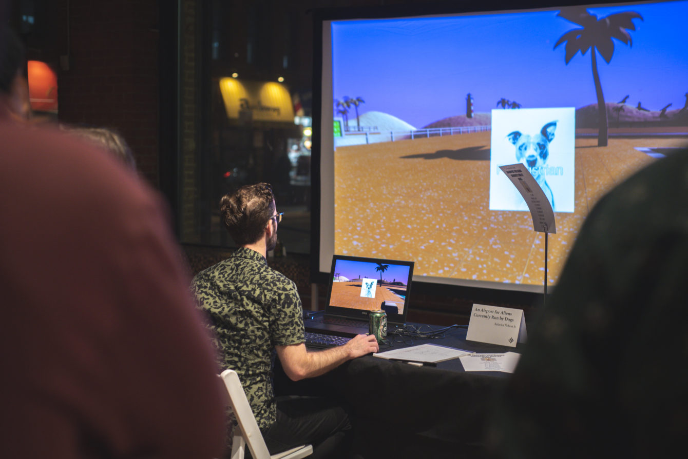 An Airport for Aliens Currently Run by Dogs debuted at the 2019 No Quarter showcase a few days later thanks to the generosity and trust of the NYU Game Center. Judging from Emi Spicer’s wonderful pictures alone, you can see how that went.